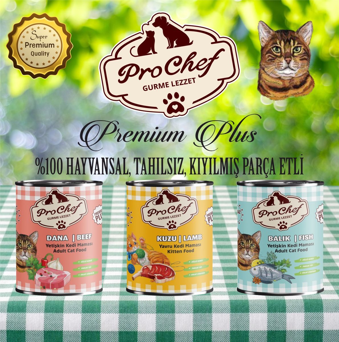 Premium plus yetişkin kedi maması Protein and energy store Super premium quality Içermiş olduğu yüksek derecede sindirebilir taze hayvansal protein hayvanlarınızın ideal kilosunda kalmasını sağlar. %100 hayvansal ürünlerden üretilmiştir. Dengeli kalsiyum fosfor oranı ile sağlıklı iskelet yapısını ve gelişimini sağlar. Içermiş olduğu vitamin ve mineraller sayesinde bağışıklık sistemini güçlendirir. Ethoxyguin, bha ve bht ve yapay kimyasal içermez. Prochef ürünlerinde aafco kedi ve köpek maması standartlarını gözetmektedir. Kendine has doğal aroması ve lezzeti sayesinde iştahla yenmesini sağlar. Içindekiler: kıyılmış balık eti (%10), hayvansal yan ürünleri (%60), mineraller, vitaminler, taurin. Kullanım koşulları : oda sıcaklığında muhafaza ediniz. Bombajlı ve sızıntı içeren ambalajları satın almayınız. Açıldıktan sonra buzdolabında saklayınız ve 48 saat içinde tüketiniz. Son kullanma tarihinden önce tüketiniz. Ingredients: minced fish meat (%10), beef meat and meat products (%60), minerals, vitamins, taurin. Terms od use: store atrom temperature. Don’t buy bendy and leaky packages. After opening store in refrigerator and consume within 48 hours. Consume before the expiry date. Analiz değerleri / analysis values enerji / energy : 3200 kcal / kg ham protein / raw protein : % 10 ham yağ/ raw fat : % 6 nem / moisture : %80 ham kül / raw ash : % 2 fosfor / phosphorus : % 0.25 Besleyici ilaveler / nutritional supplements a vitamini / vitamin a : 750 ıu / kg d3 vitamini / vitamin d3 : 250 ıu /kg e vitamini / vitamin e : 25 mg / kg b vitamini / vitamin b : 10 mg / kg demir / iron : 22 mg / kg bakır / copper : 12 mg / kg manganez / manganese : 5 mg / kg çinko / zinc : 25 mg / kg